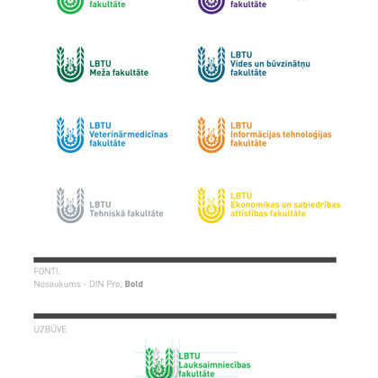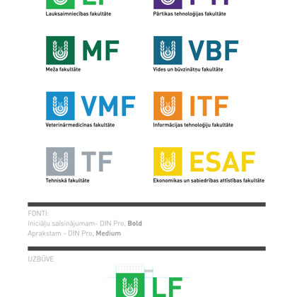 PASŪTĪJUMS: 1) Logotipa rebrendings uz jauno nosaukumu (no LATVIJAS LAUKSAIMNIECĪBAS UZNIVERSITĀTE - LLU uz LATVIJAS BIOZINĀTŅU UN TEHNOLOĢIJU UNIVERSITĀTE), latviešu un angļu valodā. 2) Logotipa izstrāde fundamentālai bibliotēkai un studējošo pašpārvaldei. 3) Logotipa izstrāde fakultātēm, saglabājot esošās krāsas. 4) Prezentācijas templeitu dizaina izstrāde PowerPoint programmā.